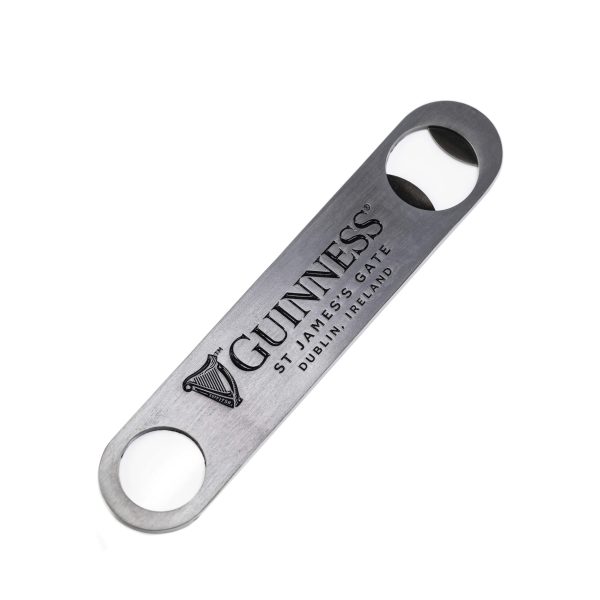 This handy bar blade is perfect for opening that cold, refreshing bottle. The classic metal bar blade features the Guinness logo. A must-have for any home bar or Guinness fan.